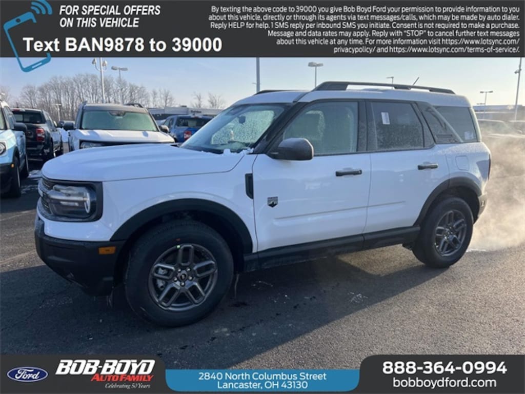$3,500 off MSRP! 2025 Oxford White Ford Bronco Sport Big Bend 4WD 1.5L EcoBoost This well-equipped Bronco Sport has many features including, ABS brakes, Active Cruise Control, Alloy wheels, Compass, Electronic Stability Control, Heated door mirrors, Illuminated entry, Low tire pressure warning, Remote keyless entry, Traction control.
