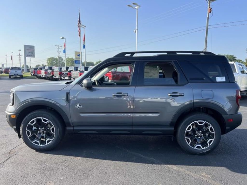 $6,377 off MSRP! 2025 Carbonized Gray Metallic Ford Bronco Sport Outer Banks 4WD 1.5L EcoBoost This well-equipped Bronco Sport has many features including, ABS brakes, Active Cruise Control, Alloy wheels, Compass, Electronic Stability Control, Front dual zone A/C, Heated door mirrors, Heated front seats, Illuminated entry, Low tire pressure warning, Remote keyless entry, Traction control.