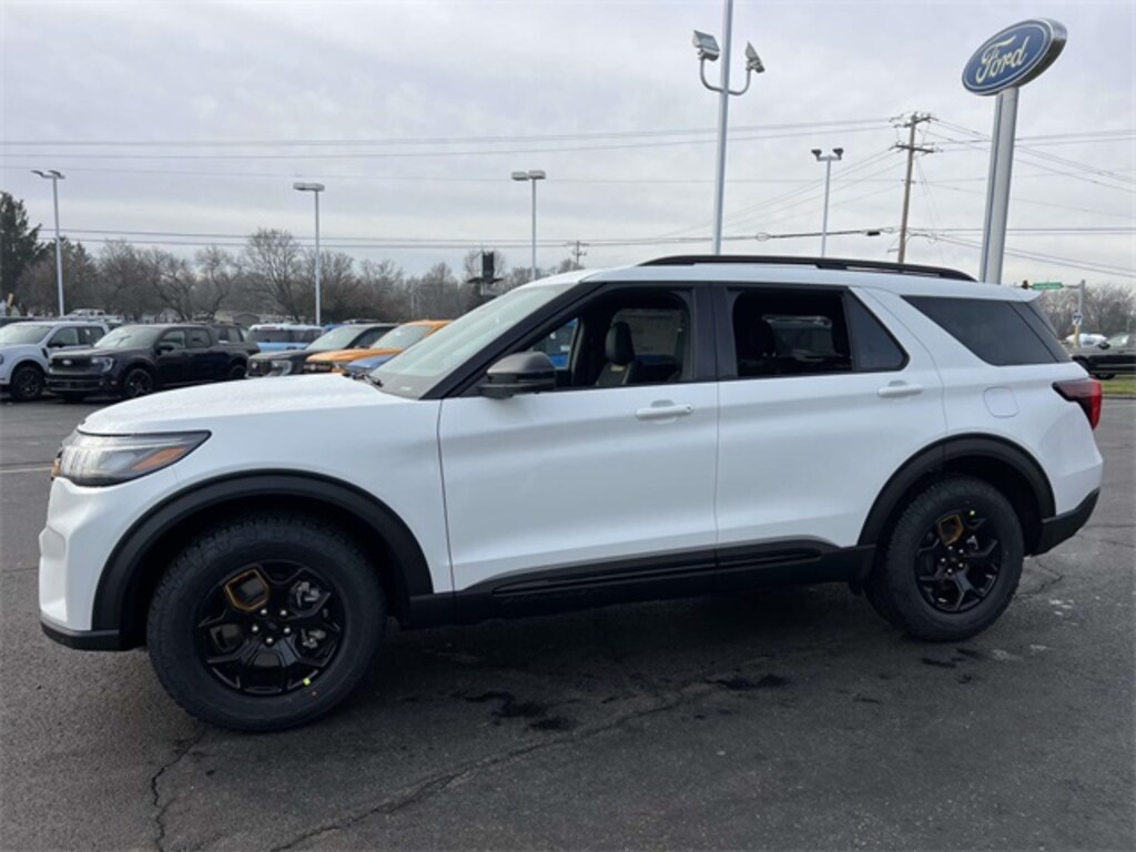 $4,045 off MSRP! 2026 Star White Metallic Tri-Coat Ford Explorer Tremor 4WD 3.0L EcoBoost V6 This well-equipped Explorer has many features including, ABS brakes, Active Cruise Control, Alloy wheels, Compass, Electronic Stability Control, Front dual zone A/C, Heated door mirrors, Heated front seats, Heated rear seats, Illuminated entry, Low tire pressure warning, Navigation System, Power Liftgate, Remote keyless entry, Traction control.