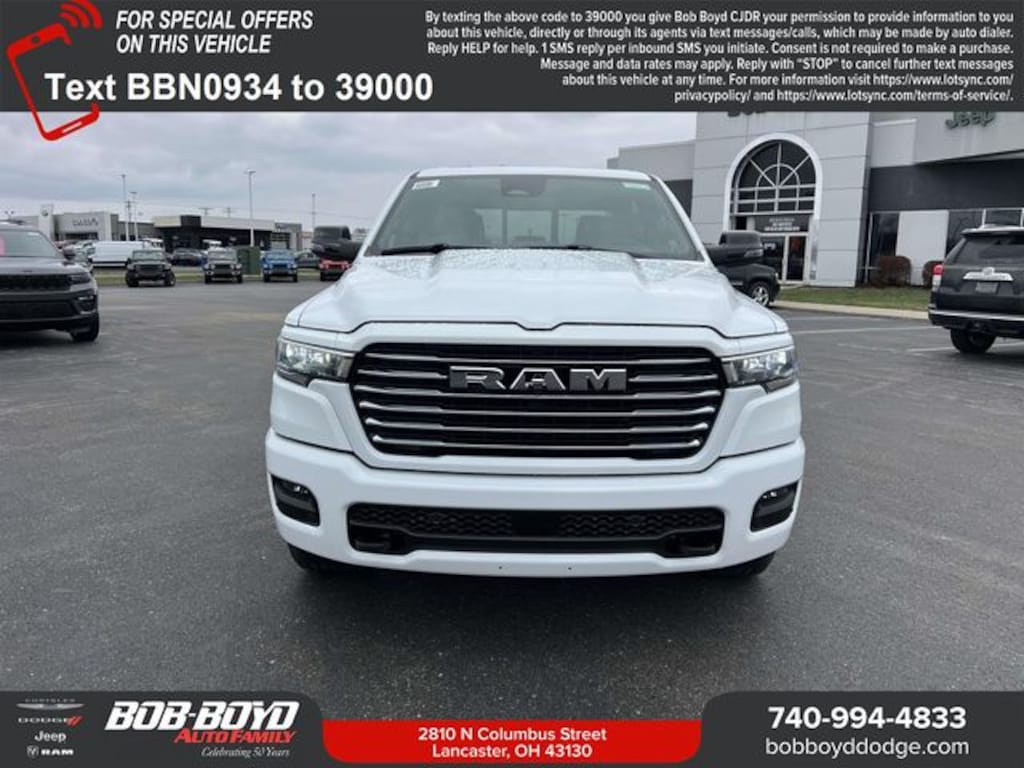 Proudly Serving: Dublin, Columbus, Westerville, Chillicothe, Dayton, Xenia, Springfield, Wilmington, Beavercreek, Marysville, Cincinnati, Cleveland, Lancaster, West Jefferson, Grove City, and all of greater Ohio. For additional information on this good-looking 2026 Ram 1500 please visit our website bobboyddodge.com or call 740-653-2277 and ask for Chrysler Jeep Dodge Ram used car department. Price includes: $1000 - 2026 National Bonus Cash . Exp. 03/31/2026 $3500 - 2026 National Retail Bonus Cash . Exp. 03/31/2026